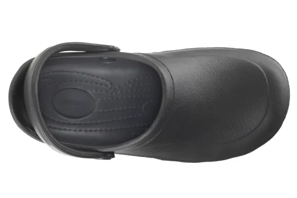Ezi-Klog® is a breakthrough in both safety and comfort. The result of years of research and development, Ezi-Klog combines the comfort and correct support of our lightweight E-Techu2122 material, with our unique Grip-Safeu2122 rubber sole. This makes it the safest and most comfortable to wear in its class. Not only does Ezi-Klog meet European standard ISO EN20347SRC, it exceeds it.AntistaticEzi-Klogs are antistatic to eliminate the risk of involuntary movements, damage to electronic equipment and cross contamination caused by a static shock. Recent studies have also indicated that elimination of static from the body can help reduce stress.The Grip-Safe SoleThis unique rubber sole not only gives excellent slip resistance, but also offers a much greater penetration resistance over the whole sole area than other lightweight footwear available.
